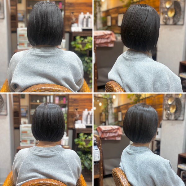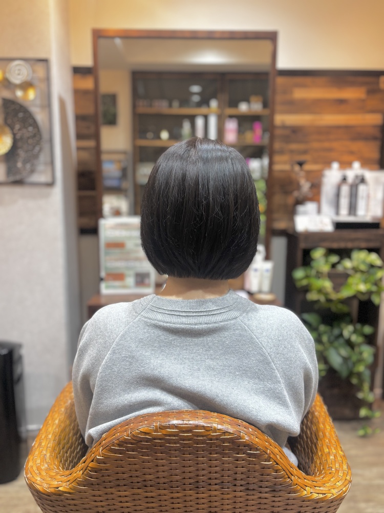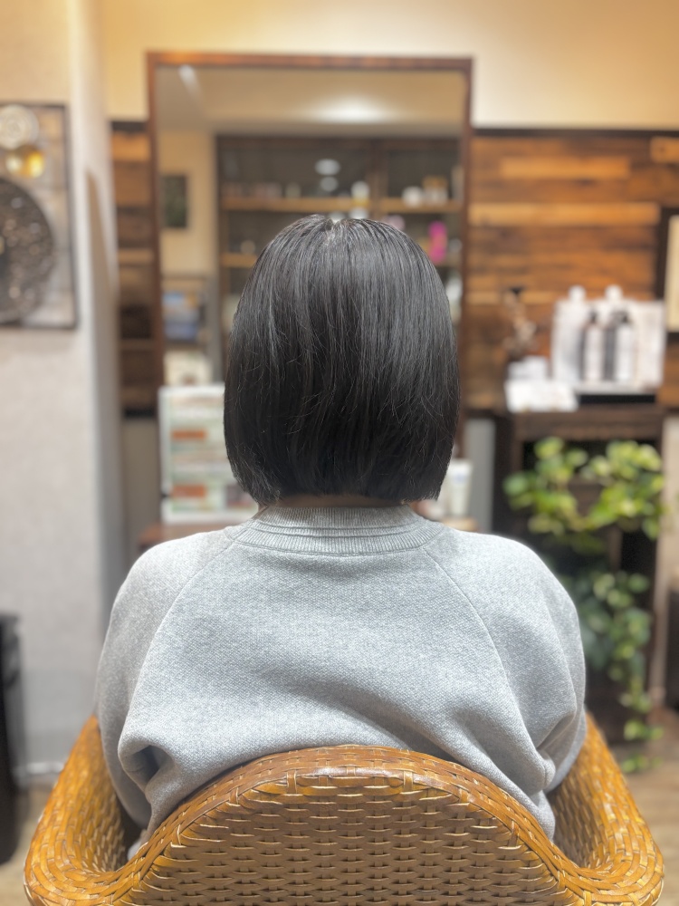 伸びたぶんを前下がりラインで切り戻していきます✂︎