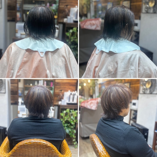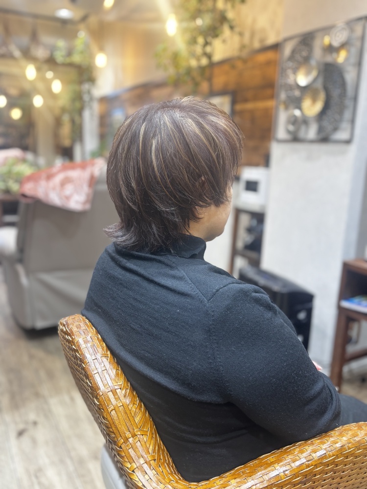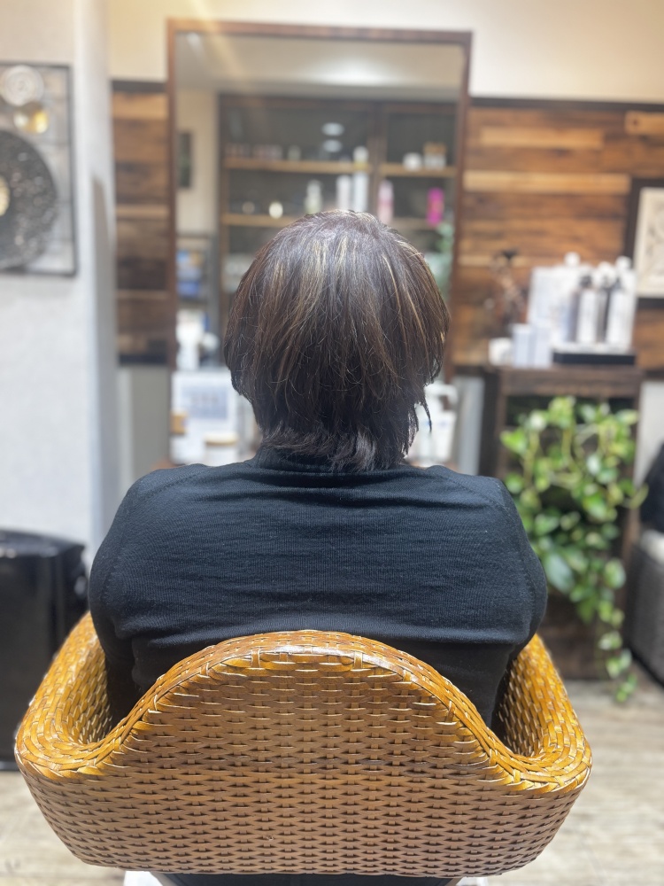 カラーは表面にハイライトの施術。